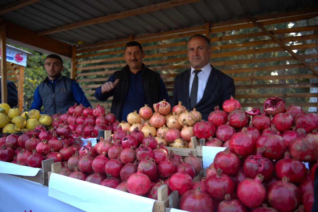 11月9日,在阿塞拜疆盖奥克恰伊区,种植户在石榴节上展示不同品种的石榴。(新华社记者 陈俊锋 摄)