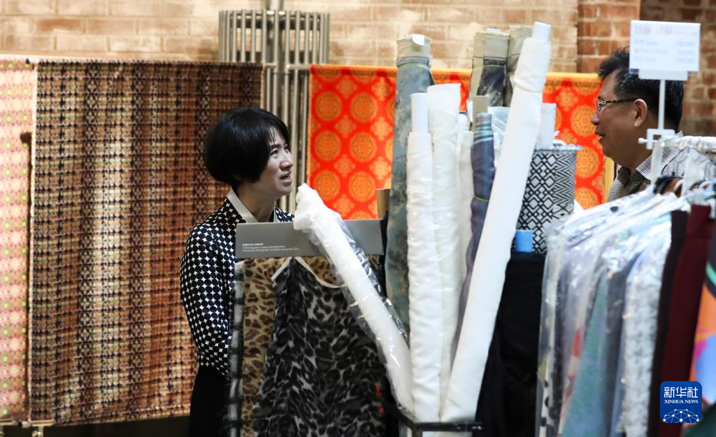 10月2日,消费者在韩国首尔广藏市场一家经营韩服面料的店铺选购。