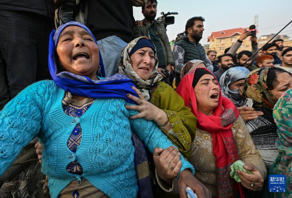 11月15日,在印控克什米尔地区斯利那加,人们哀悼爆炸事件中的遇难者。