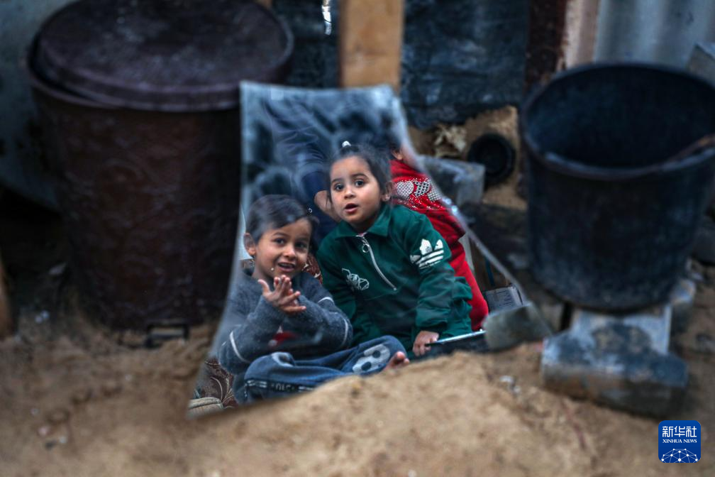 这是2025年4月7日在加沙地带北部加沙城拍摄的流离失所的儿童。
