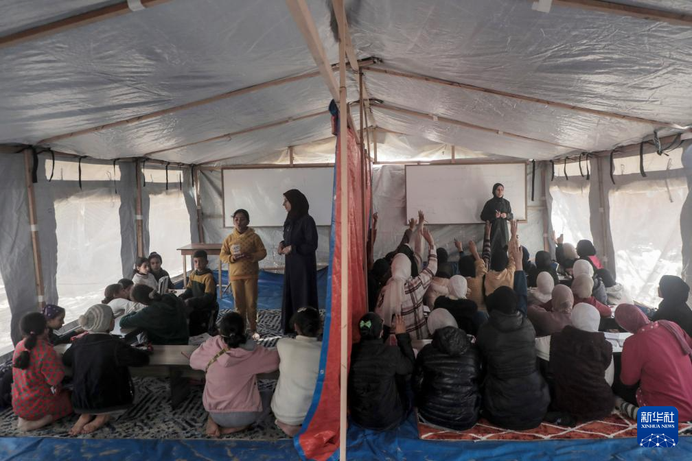 2025年1月6日,学生们在加沙地带中部代尔拜拉赫的一处临时庇护所上课。