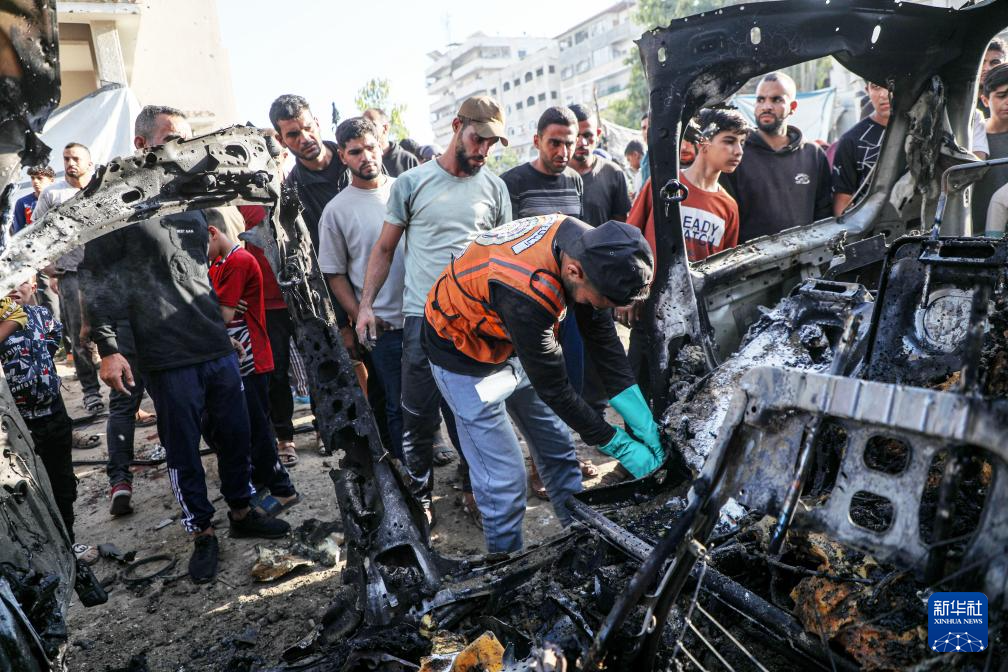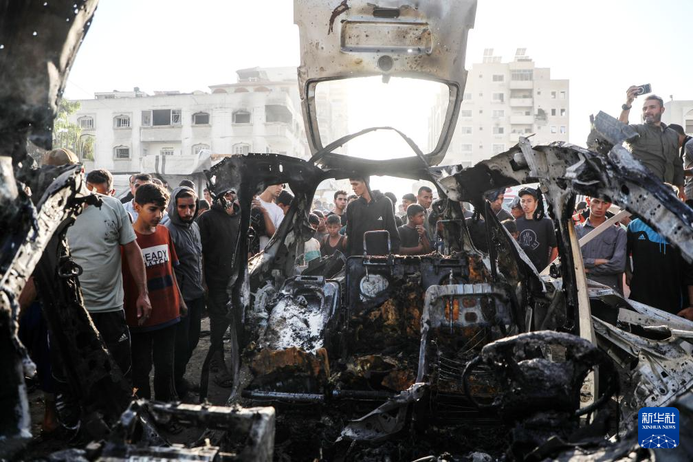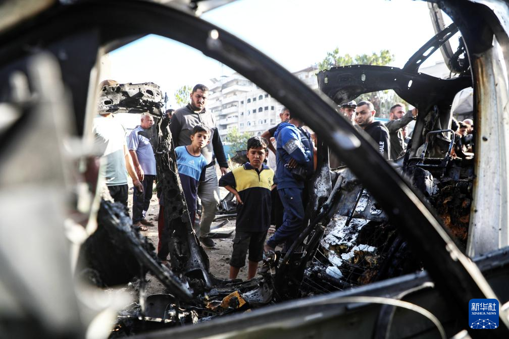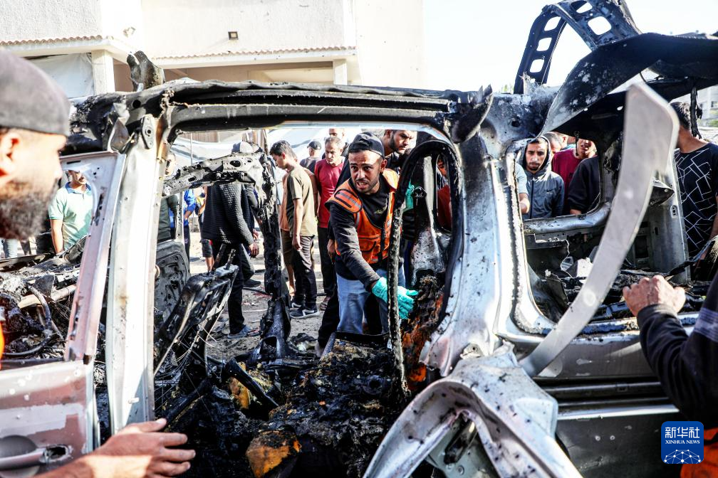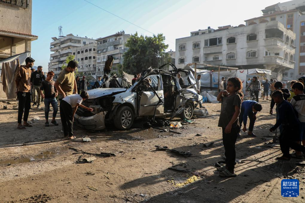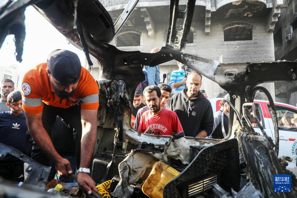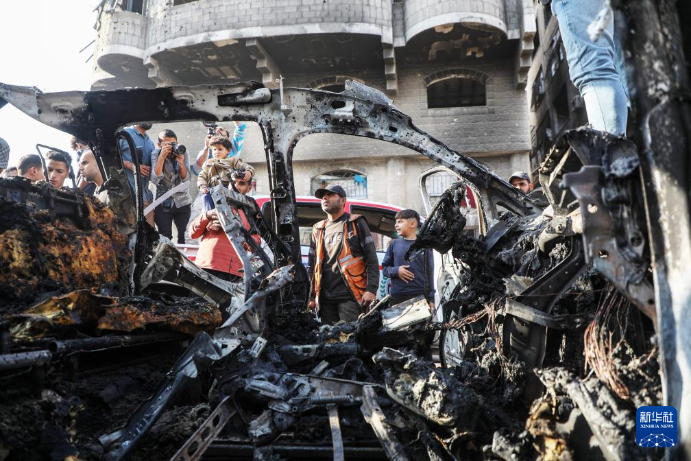 11月22日,在加沙城西部,加沙居民查看被以色列无人机炸毁的汽车。