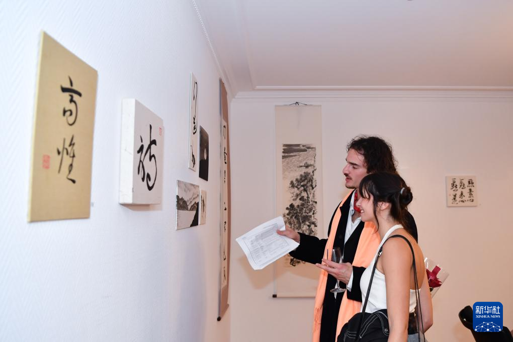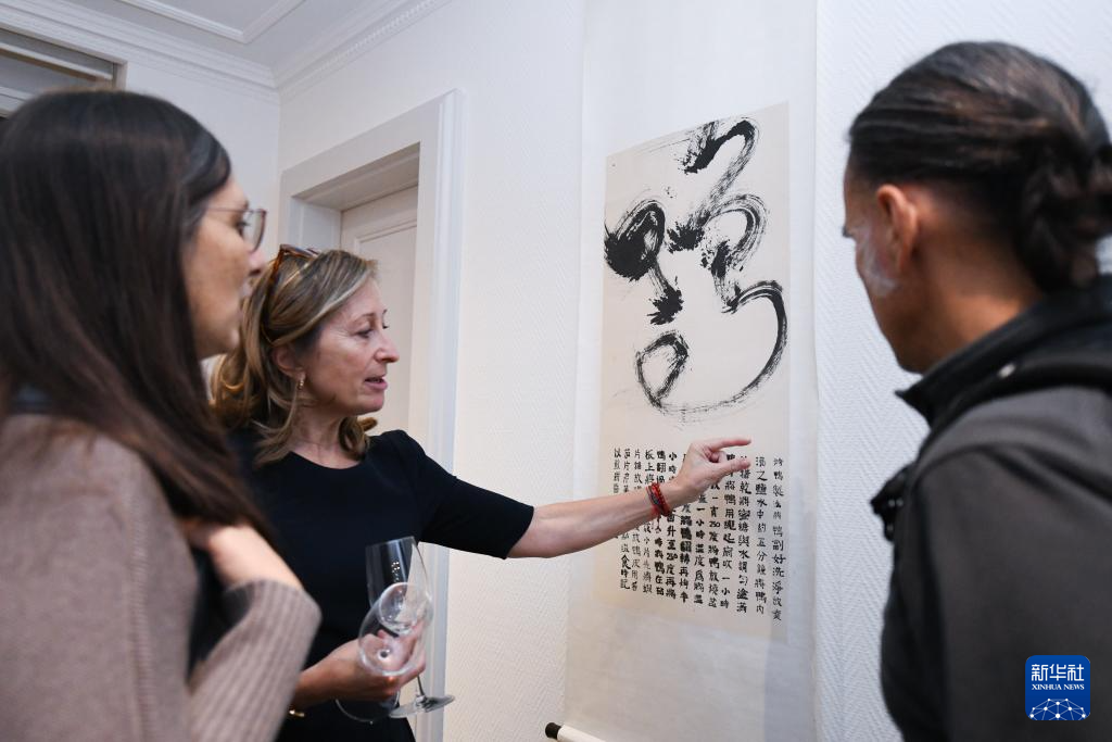 11月20日,在瑞士日内瓦,人们在“金秋”书法展上参观。新华社记者 连漪 摄