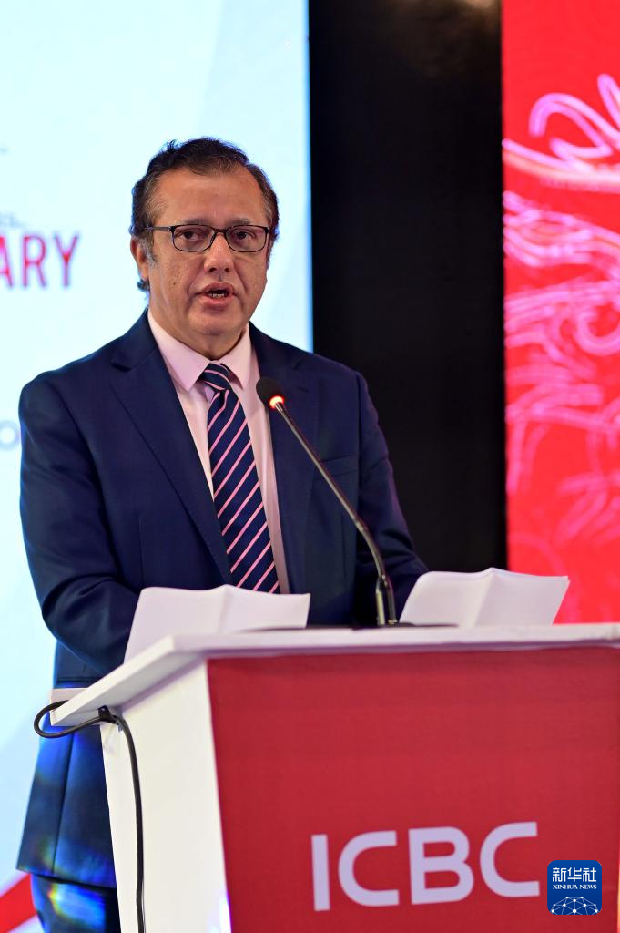 11月25日,在巴基斯坦南部城市卡拉奇,巴基斯坦国家银行(央行)执行董事穆罕默德·马利克在巴基斯坦人民币清算行(中国工商银行卡拉奇分行)举办的“人民币国际化在巴十周年”活动上致辞。新华社发 (中国工商银行卡拉奇分行供图)