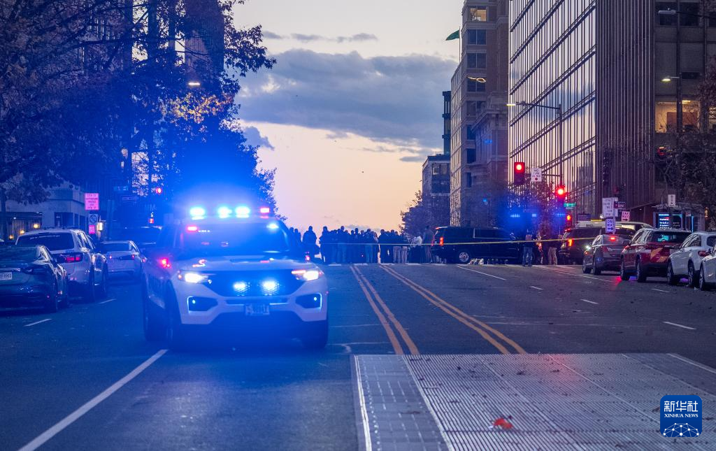 11月26日,在美国首都华盛顿,警方封锁案发现场附近街道。新华社记者 胡友松 摄