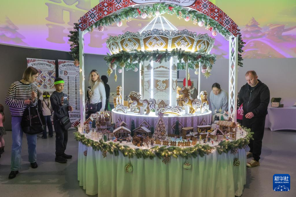 11月30日,人们在俄罗斯圣彼得堡参观姜饼作品。
