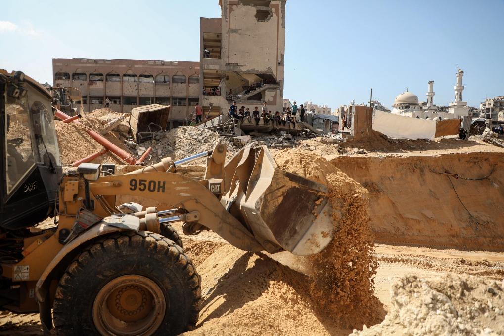 10月17日,司机驾驶装载机在加沙地带汗尤尼斯清理街道,搜寻遗体。新华社发(里泽克·阿卜杜勒贾瓦德摄)