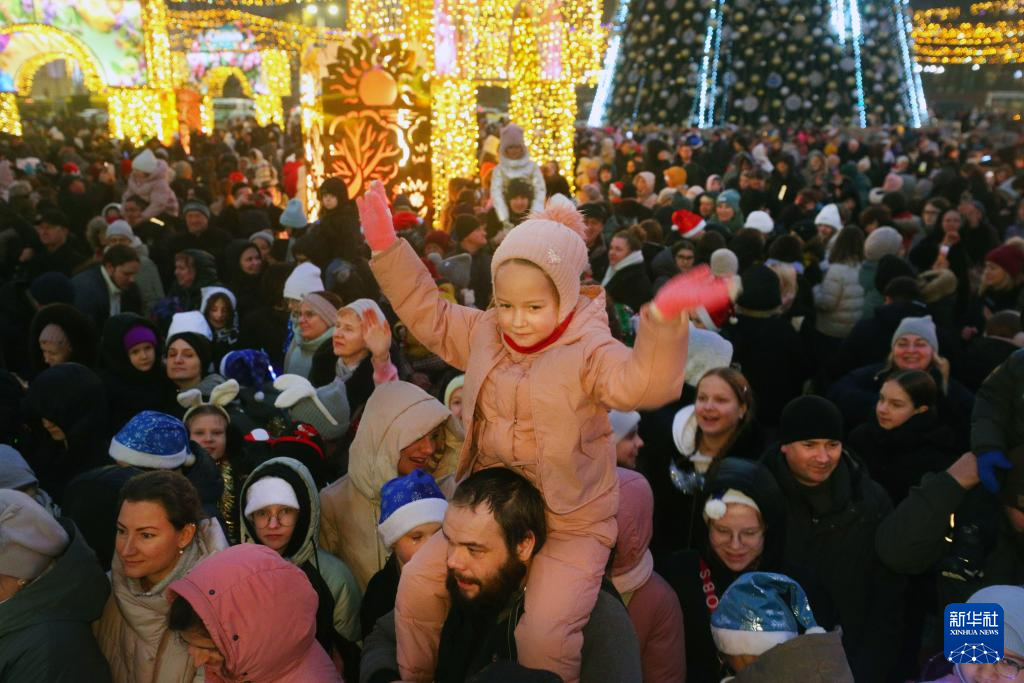 12月15日,在白俄罗斯明斯克,人们参加新年树亮灯仪式。
