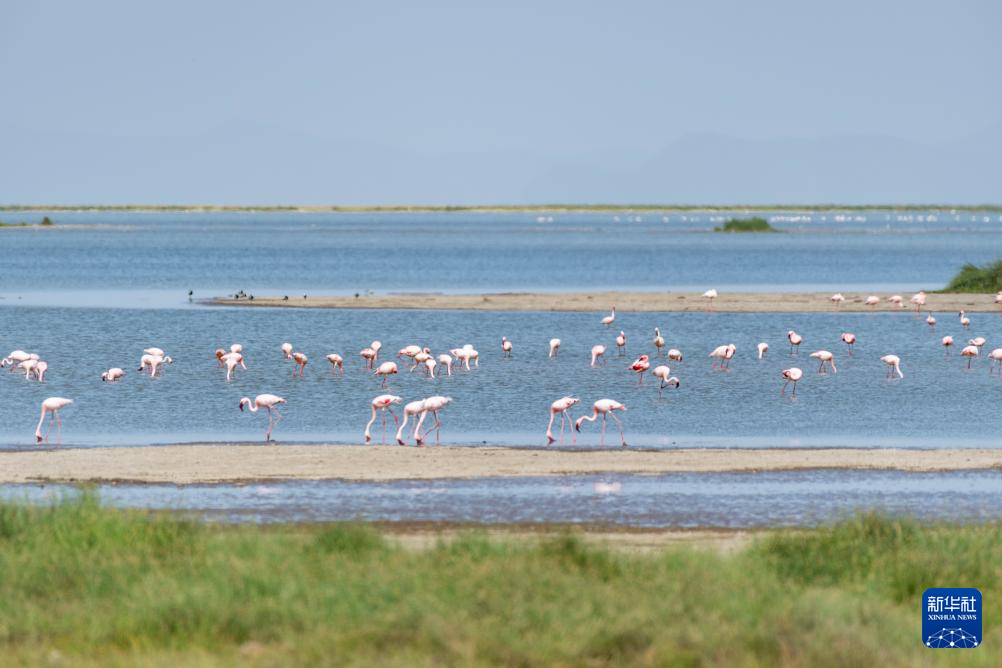 这是1月8日在肯尼亚安博塞利国家公园拍摄的火烈鸟。
