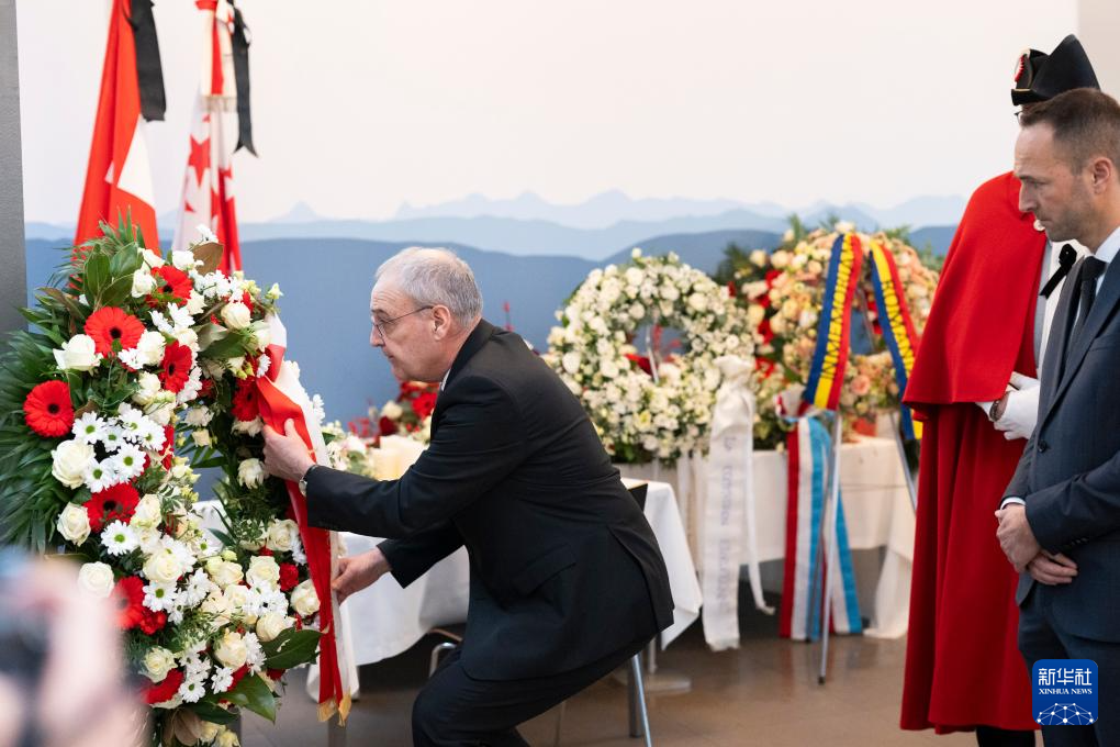 1月9日,在瑞士瓦莱州马蒂尼,瑞士联邦主席帕姆兰参加官方悼念仪式。