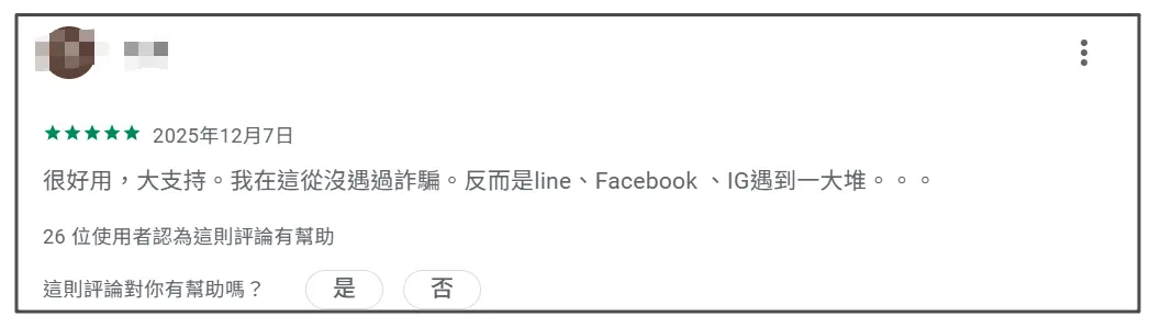 也有用户说:“没有政治网军,没有诈骗的高风险广告,后台大数据自动拦截诈骗分子和假账号,(这是)和大陆警方合作签署反诈的平台。时尚、穿搭、美食、旅游攻略、友善留言……想骗人的私人账号,被举报多次后,后台就会处理冻结,比脸书、IG安全太多。”