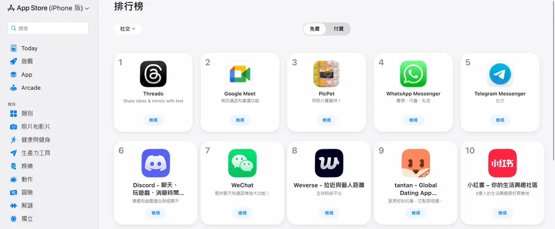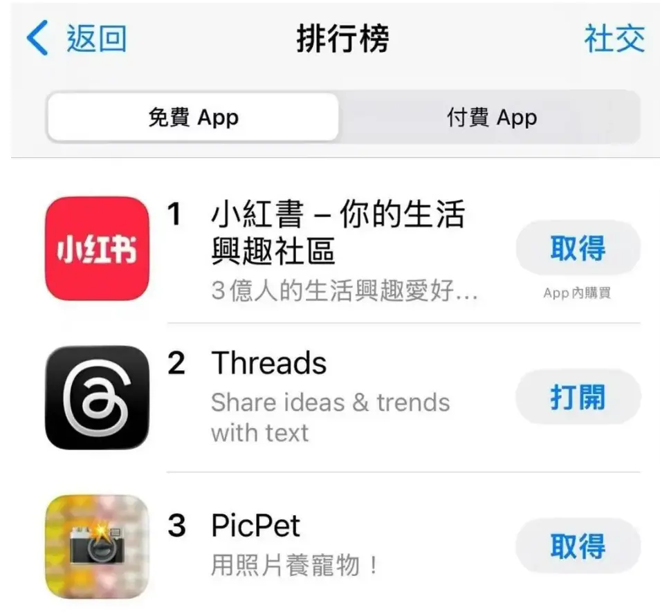 小红书还曾一度登上台湾社交App热门下载榜第一。