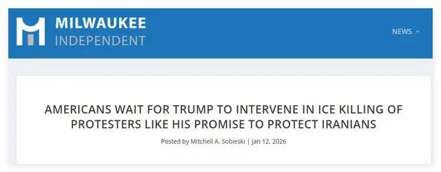 美国《密尔沃基独立报》的一篇评论文章认为,白宫方面一边宣称要保护伊朗的“抗议者”,一边却对美国的执法部门枪杀37岁的美国籍女子蕾妮·古德无动于衷,是典型的“双重标准”。
