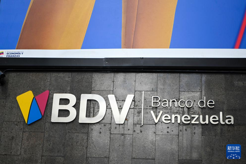 这是1月13日在委内瑞拉首都加拉加斯拍摄的委内瑞拉银行标志。