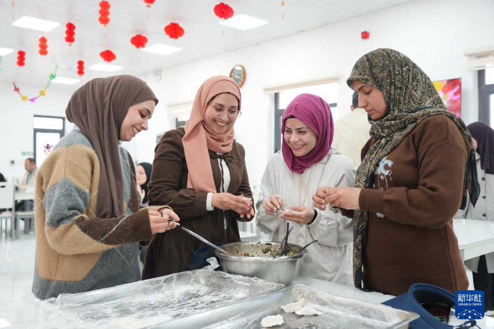 2月16日,在伊拉克瓦西特省艾哈代布油田,伊拉克员工体验包饺子。