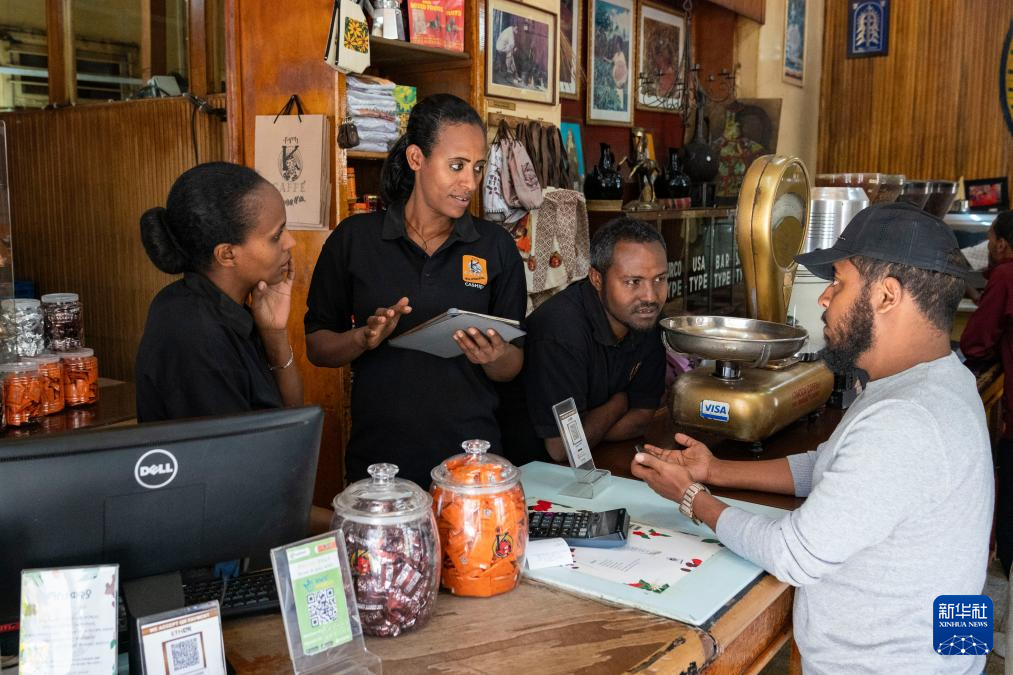 2月12日,在埃塞俄比亚首都亚的斯亚贝巴,顾客在一家咖啡店内点单。