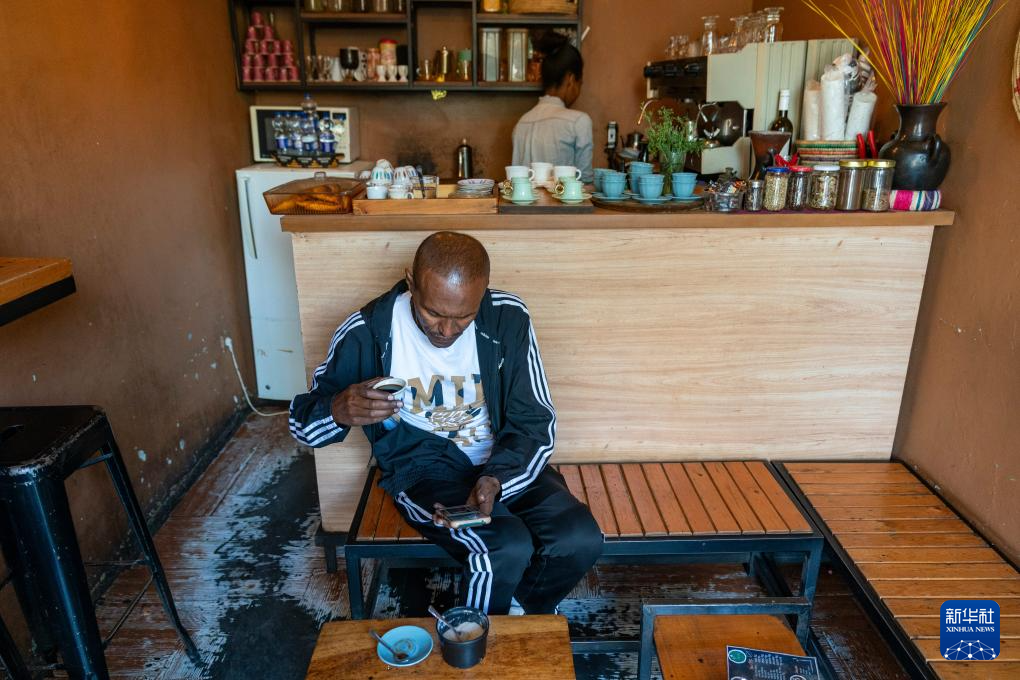 2月15日,在埃塞俄比亚首都亚的斯亚贝巴,一名男子在一家咖啡店饮用咖啡。