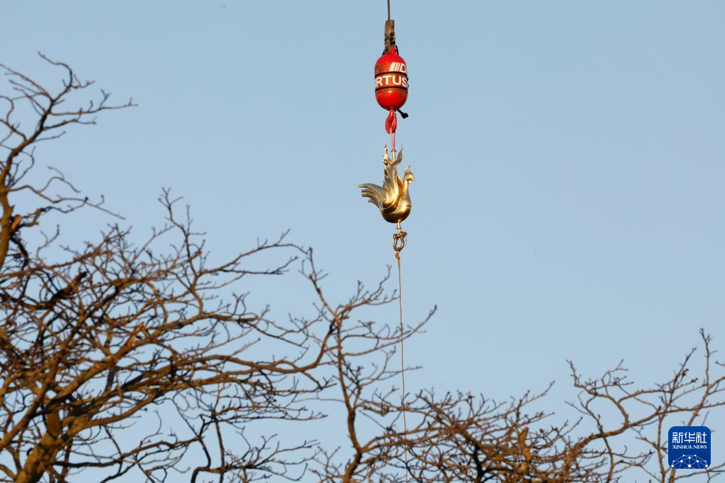 这是12月16日在法国巴黎拍摄的准备安装在巴黎圣母院塔尖的公鸡像。