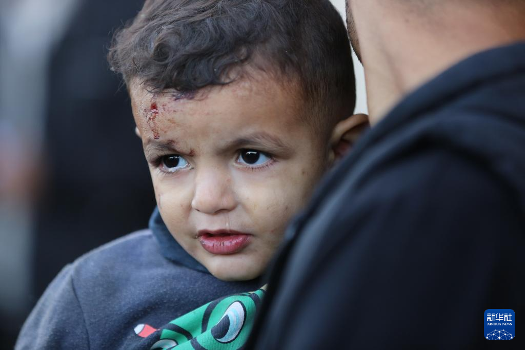 这是12月3日在加沙地带代尔拜拉赫一家医院拍摄的一名受伤的巴勒斯坦儿童。