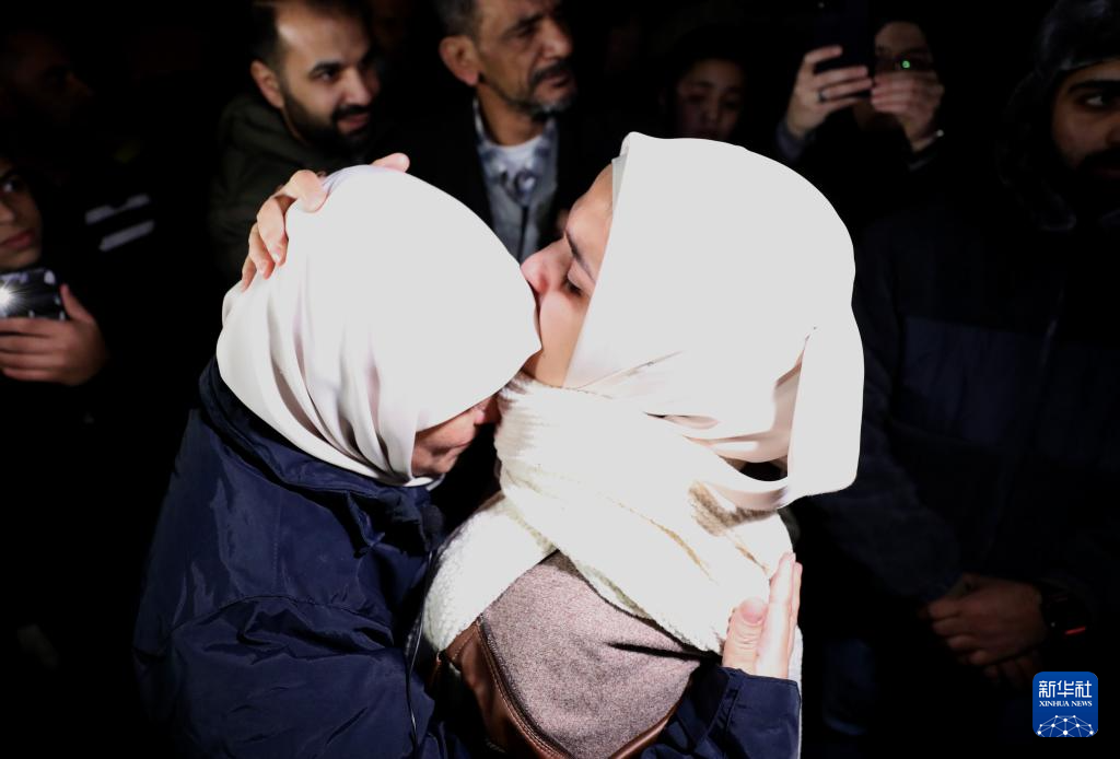 11月29日凌晨,在约旦河西岸城市拉姆安拉,获释的巴勒斯坦人与亲人团聚。
