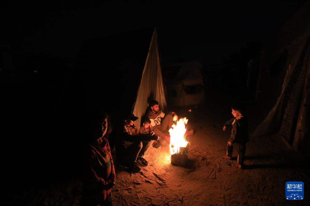 12月18日,在加沙地带南部城市拉法,人们在临时避难所休息。