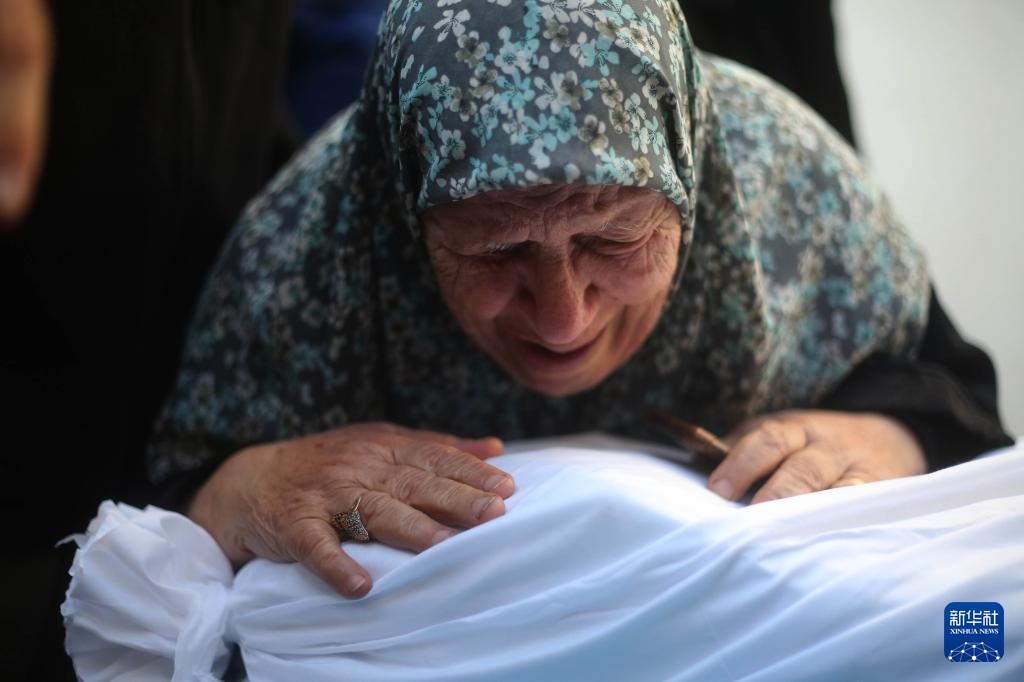 10月21日,在加沙地带南部地区,一名妇女为逝去的亲友哭泣。