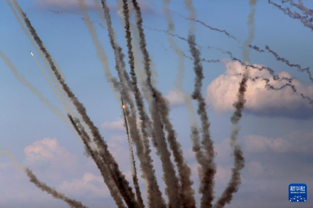 这是10月10日在加沙城拍摄的向以色列发射的火箭弹。