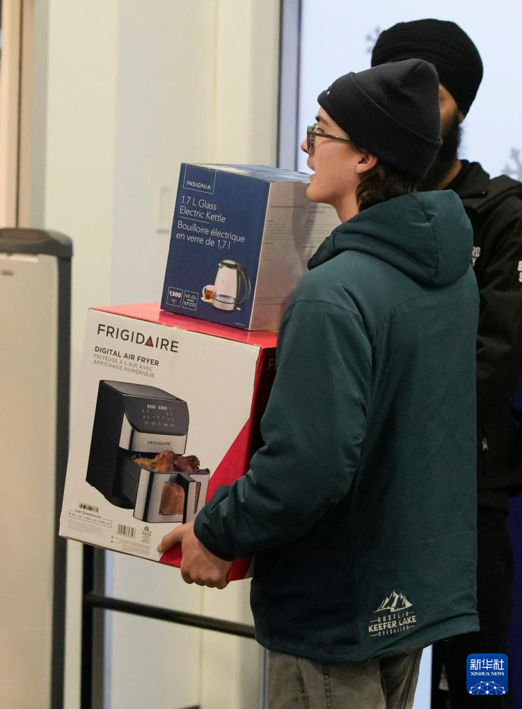 12月26日,在加拿大里士满的电器专卖店内,一名顾客购买打折货品。