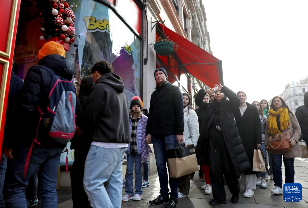 12月26日,人们在英国伦敦牛津街一家商店外排队等待购物。