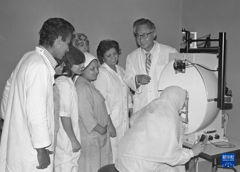 1984年10月,中国眼科医生正在向突尼斯金杜巴医院的医务人员讲解病例。