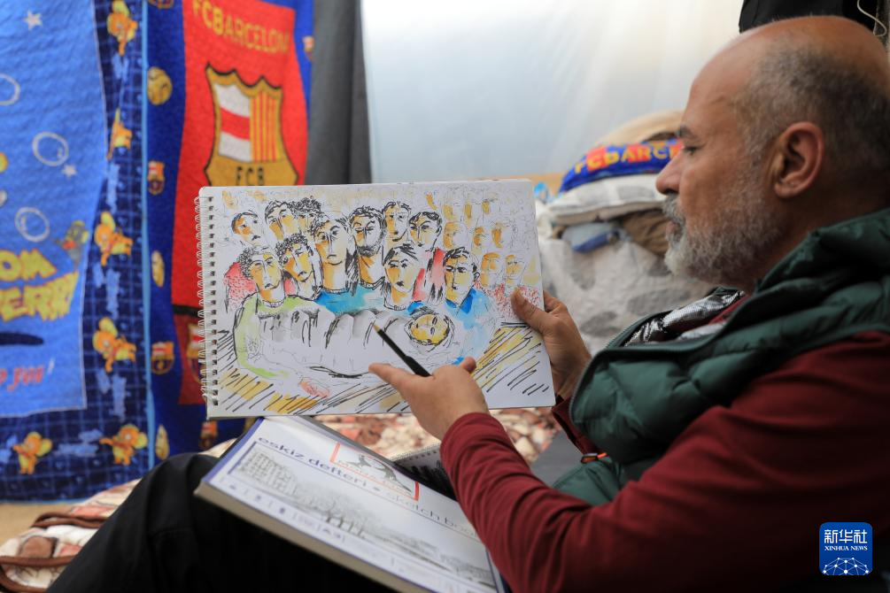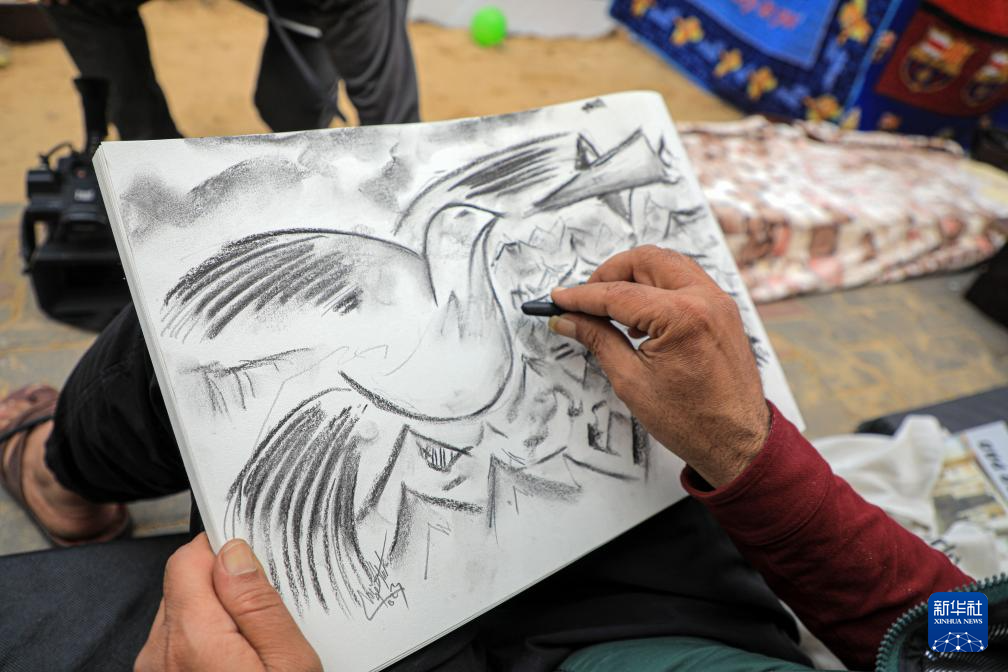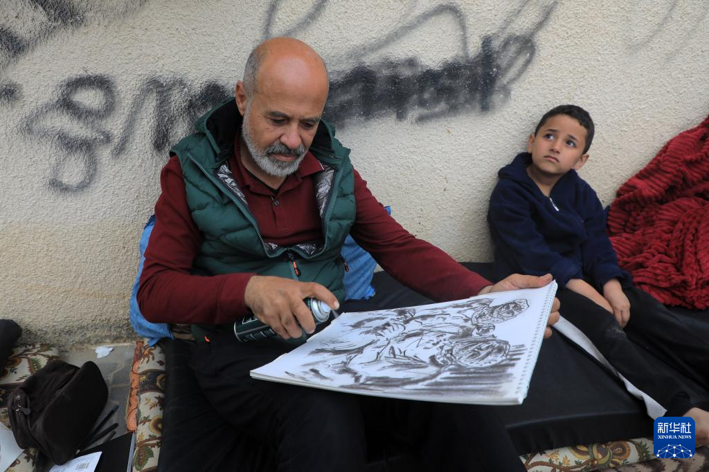 来自加沙城的巴勒斯坦画家巴西勒·马古西在本轮巴以冲突期间被迫离开家园,逃往位于加沙地带南部城市拉法的临时庇护所。马古西每天都会利用闲暇时间进行绘画创作,描述他一家人以及加沙地带人民在冲突期间的遭遇,并表达对和平的向往。加沙地带卫生部门28日发表声明说,自10月7日新一轮巴以冲突爆发以来,以军在加沙地带的军事行动已造成21320人死亡、5.5万余人受伤。据联合国数据,加沙地带的230万巴勒斯坦人中已有190万流离失所。