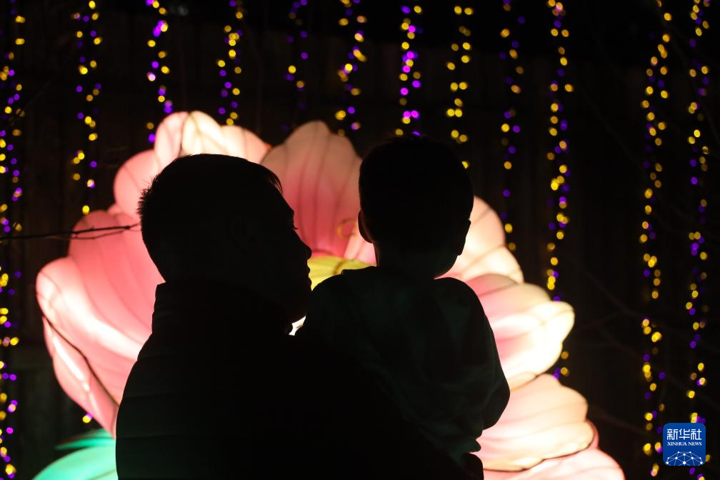 12月30日,一名女孩在美国休斯敦动物园观赏灯饰。