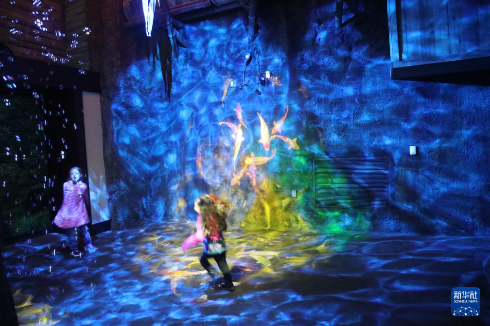 12月30日,两名儿童在美国休斯敦动物园举办的灯光秀上玩耍。