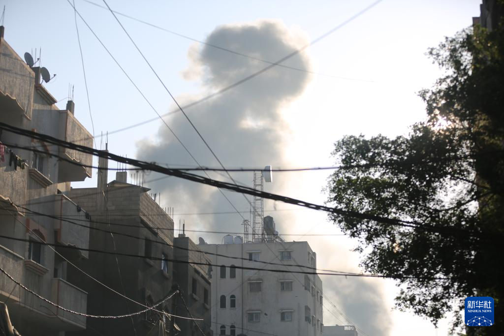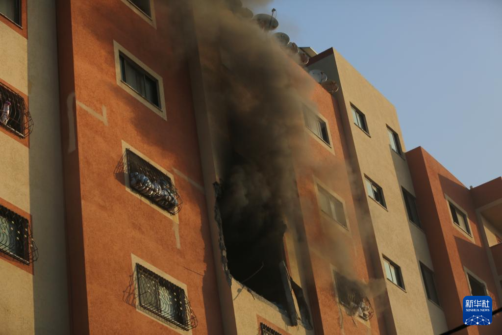 12月31日,在加沙地带中部迈加齐难民营,一栋遭以军空袭的建筑冒出黑烟。