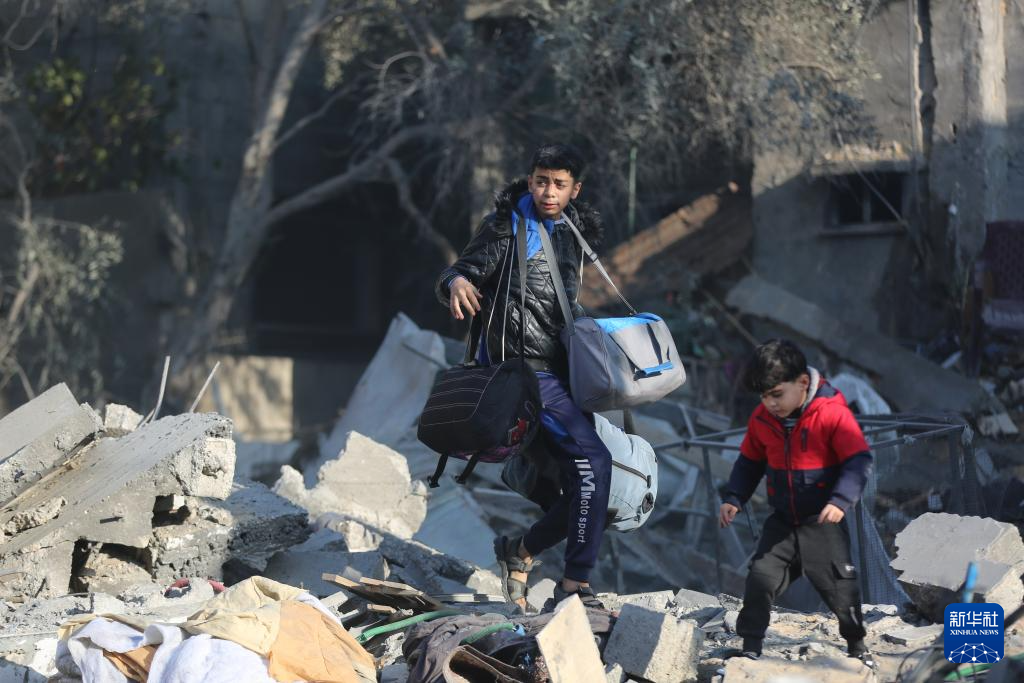 12月31日,在加沙地带中部迈加齐难民营,人们查看以军空袭后的废墟。