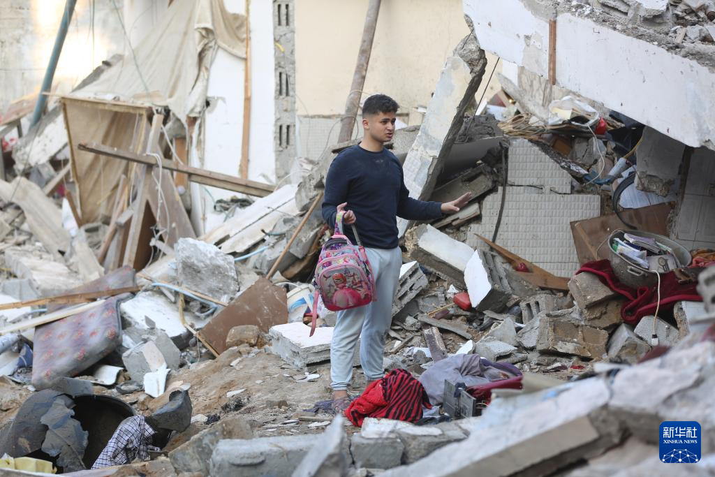 12月31日,在加沙地带中部迈加齐难民营,一名男子查看以军空袭后的废墟。