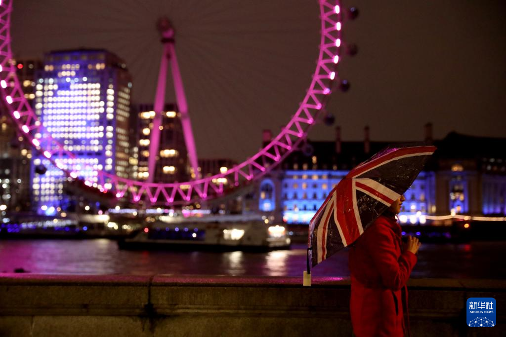 1月4日,在英国伦敦,行人撑伞行走在伦敦眼附近。