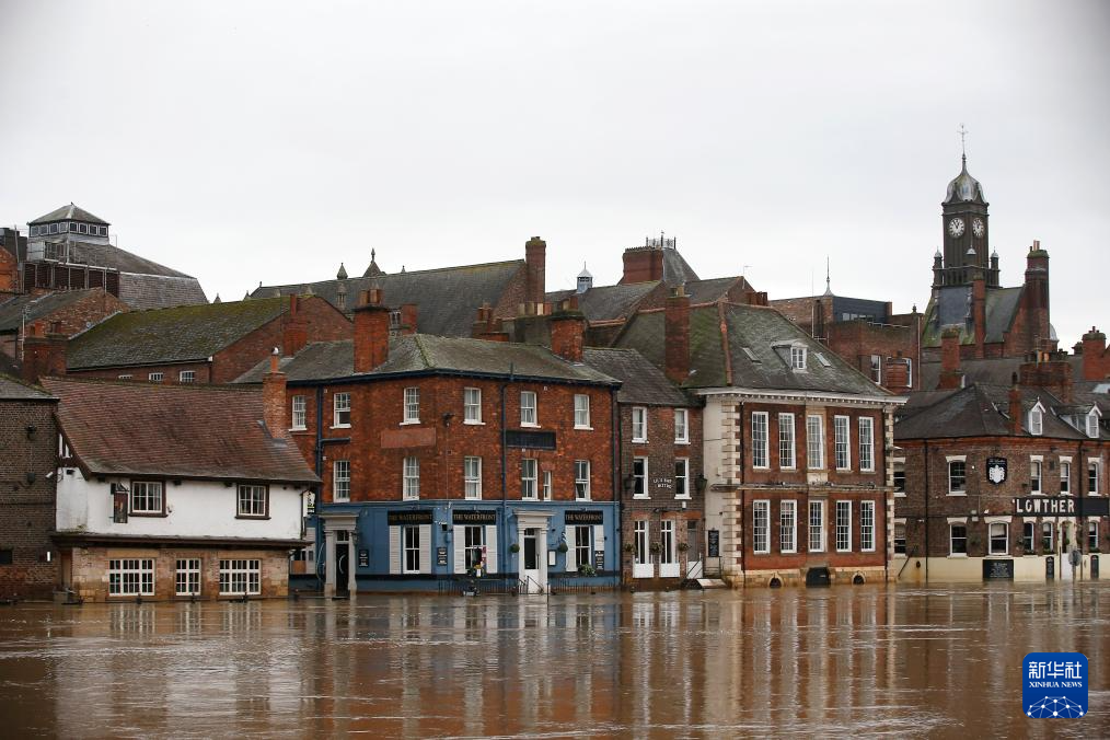 1月5日,在英国英格兰北部约克,街道被洪水淹没。 新华社发(克雷格·布劳摄)
