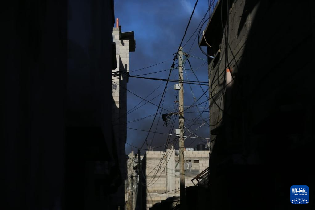1月6日,在加沙地带中部的迈加齐难民营,以军空袭后升起浓烟。