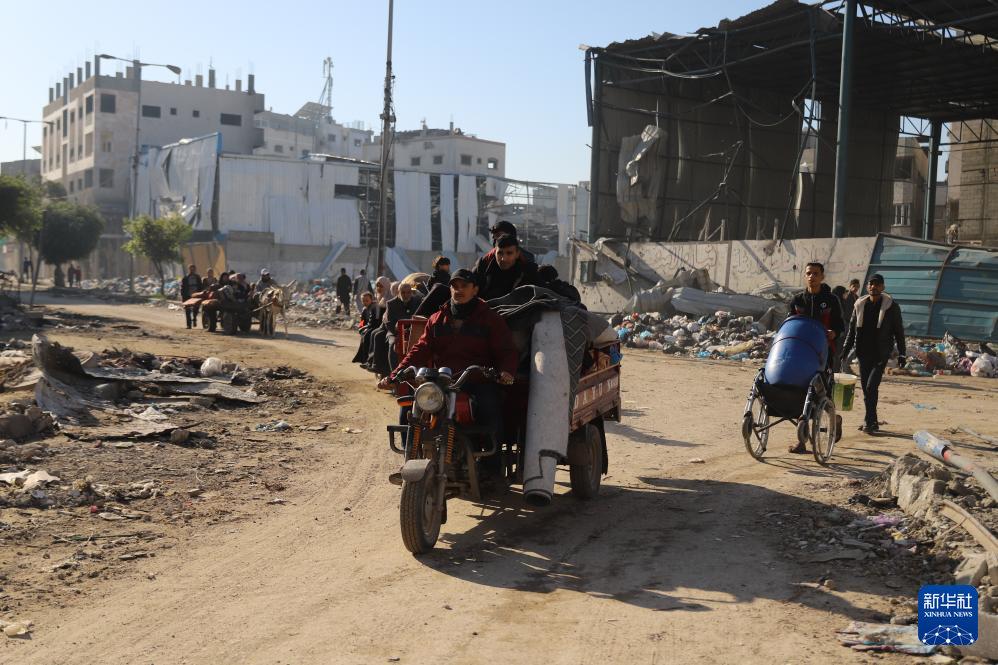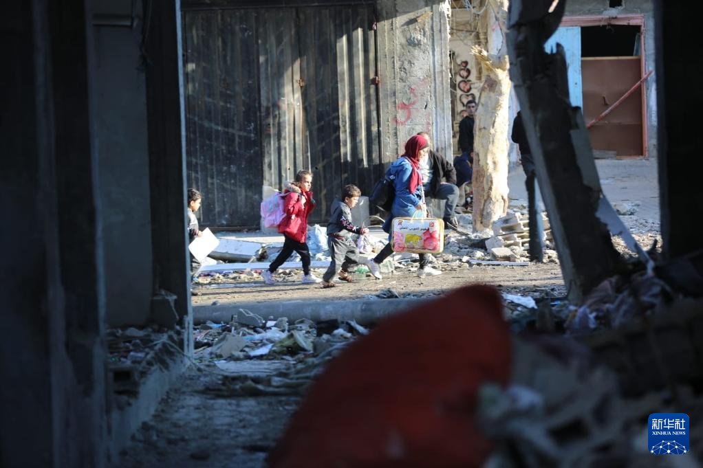 1月6日,在加沙地带中部的迈加齐难民营,人们逃离家园。