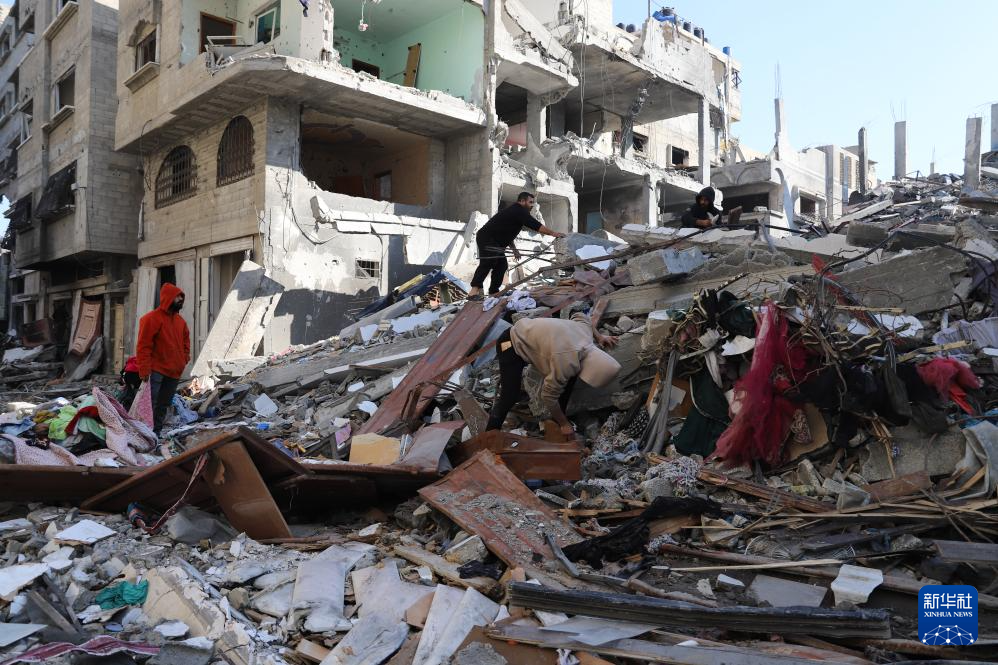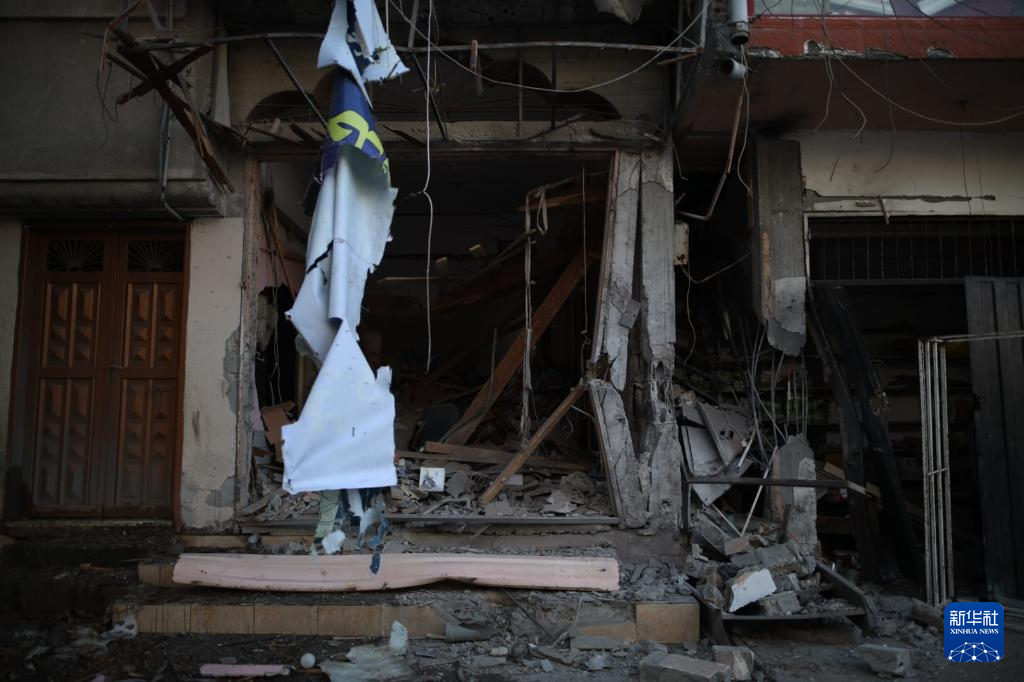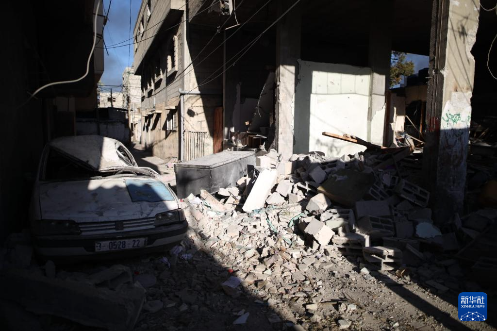这是1月6日在加沙地带中部迈加齐难民营拍摄的以军空袭后的受损情况。