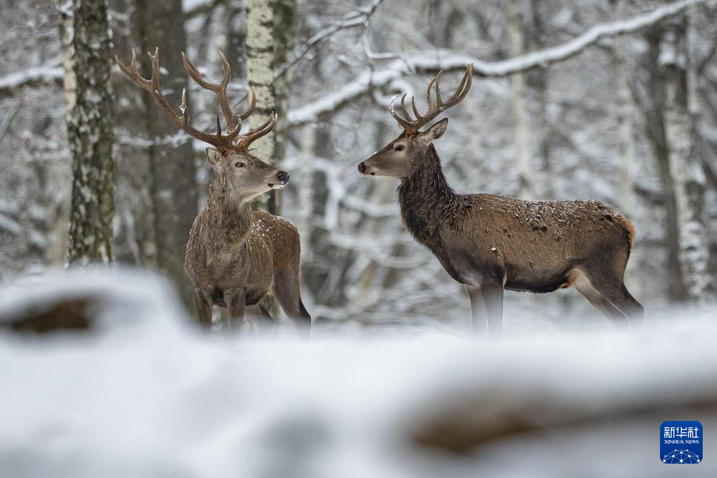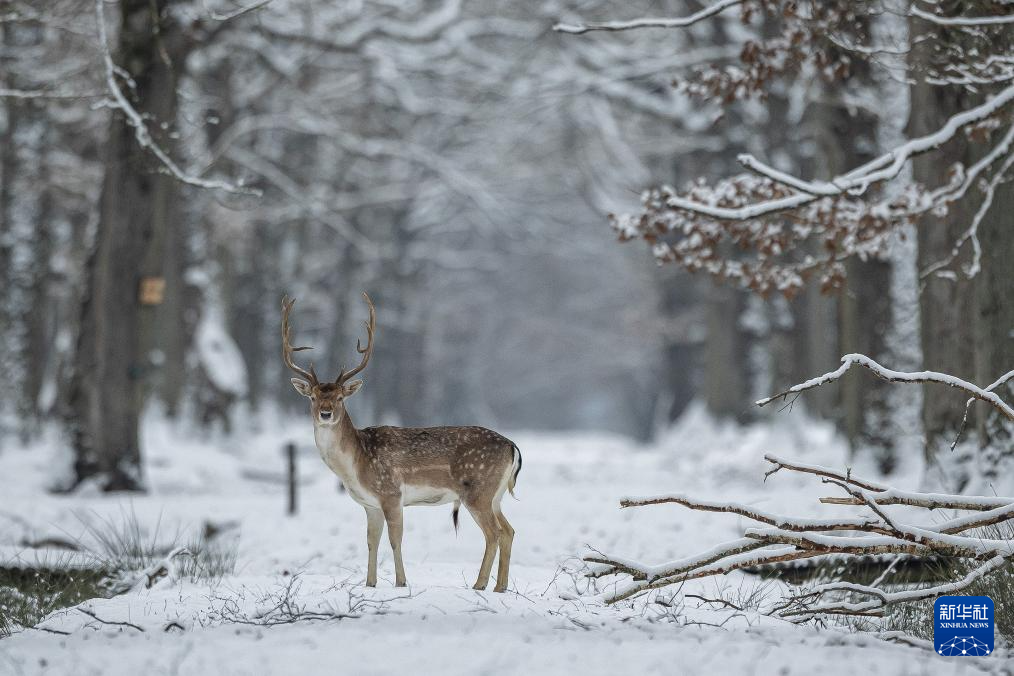 这是1月9日在法国巴黎近郊的朗布依埃森林公园里拍摄的鹿。