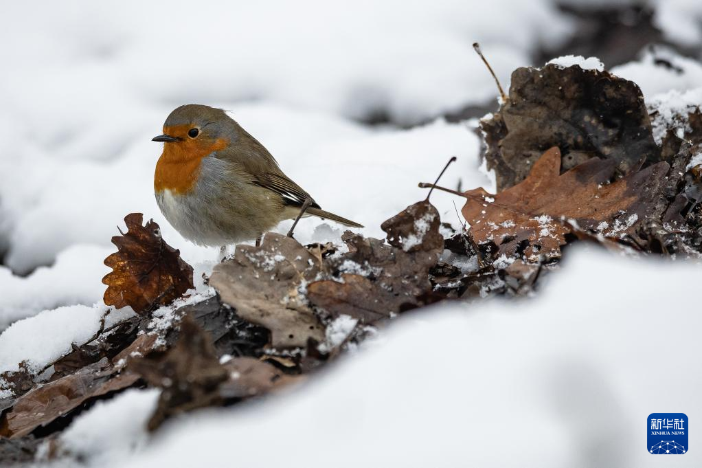 这是1月9日在法国巴黎近郊的朗布依埃森林公园里拍摄的小鸟。