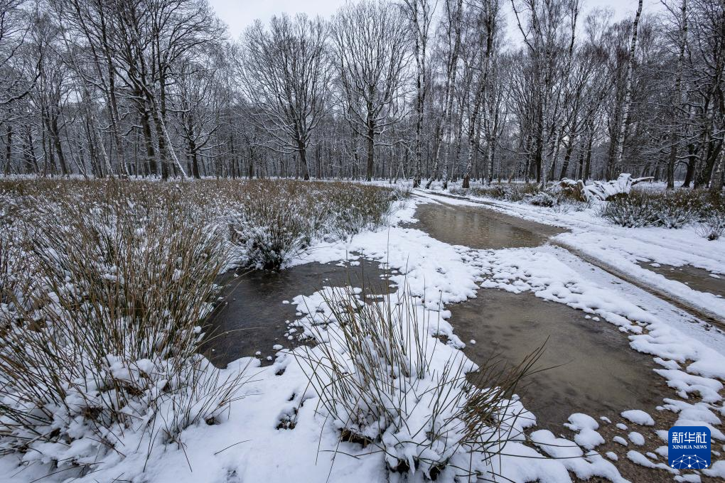 这是1月9日在法国巴黎近郊的朗布依埃森林公园里拍摄的雪景。