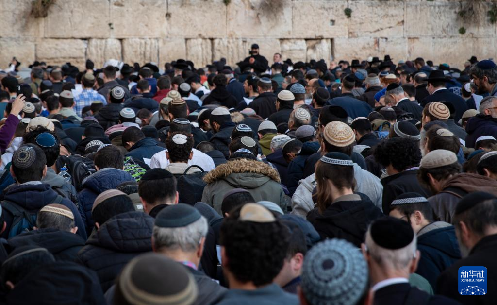 1月10日,在耶路撒冷老城西墙,民众参加祈祷和祝福活动。