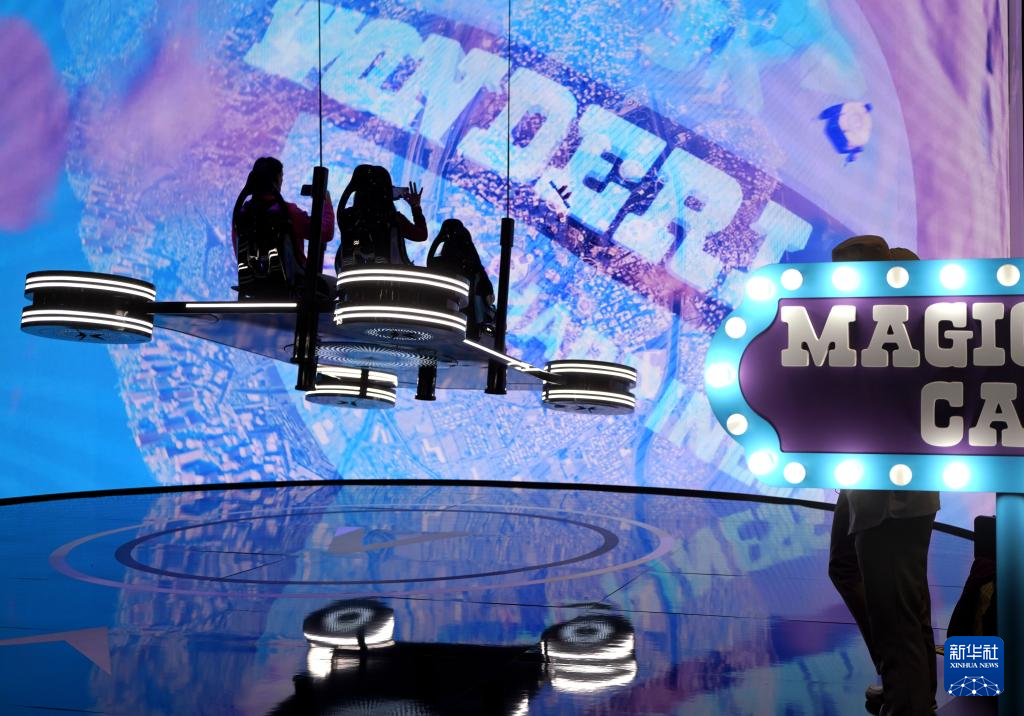 1月11日,人们在美国拉斯维加斯消费电子展SK Wonderland展台体验魔毯项目。