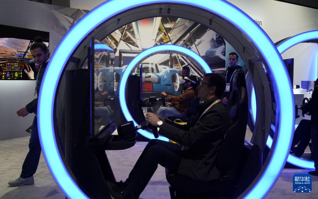 1月11日,人们在美国拉斯维加斯消费电子展索尼公司展台体验赛车游戏。