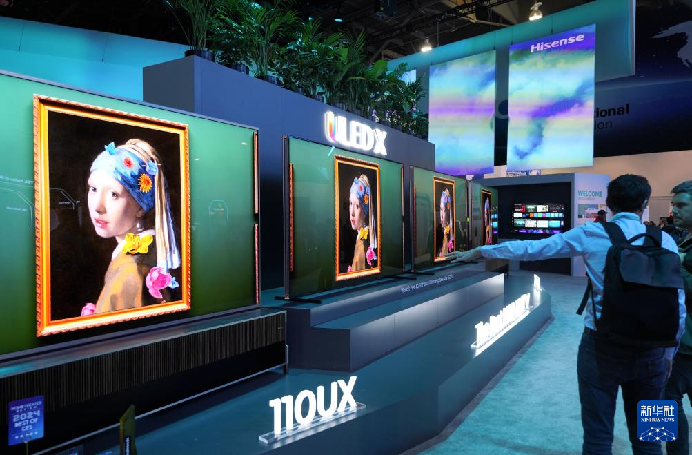 1月11日,人们在美国拉斯维加斯消费电子展上参观海信公司展台。