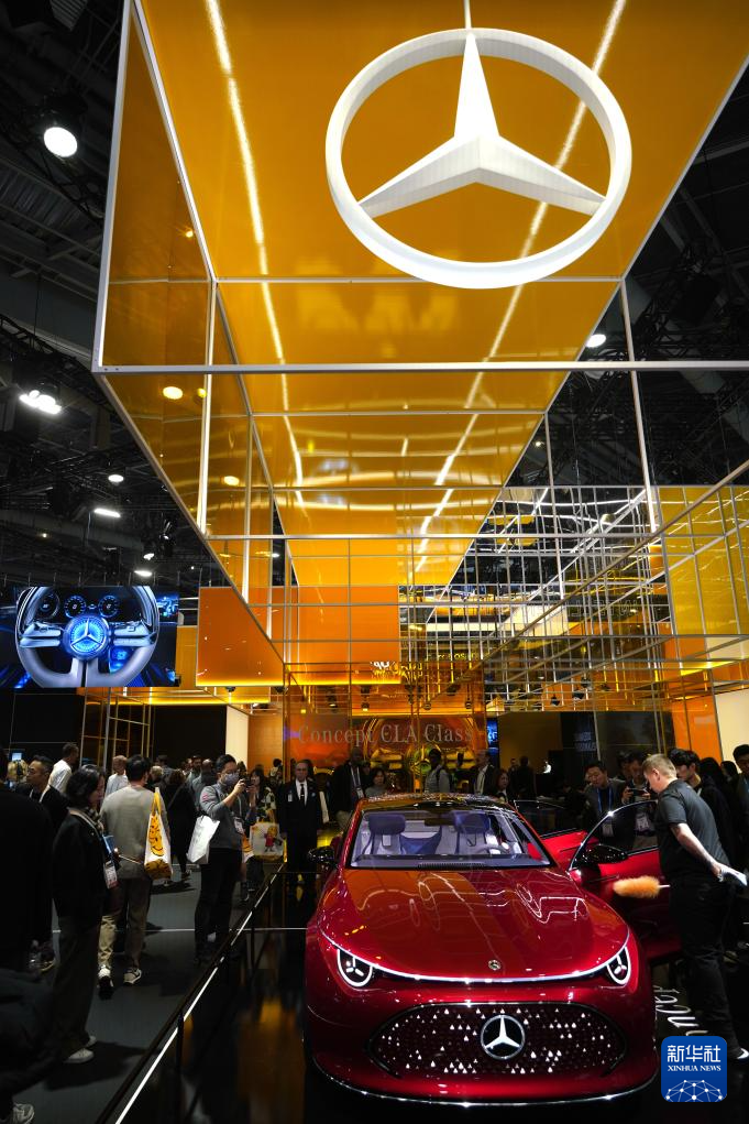 1月11日,人们在美国拉斯维加斯消费电子展上参观奔驰公司展台。