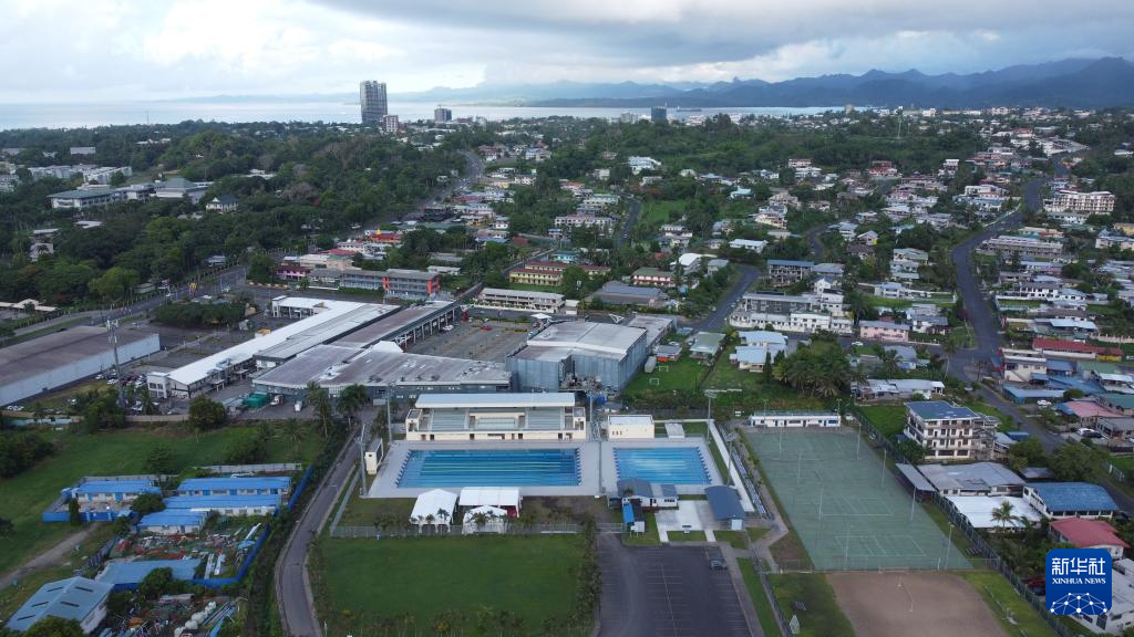 这是1月12日在斐济苏瓦航拍的中方援建翻修的室外游泳池。